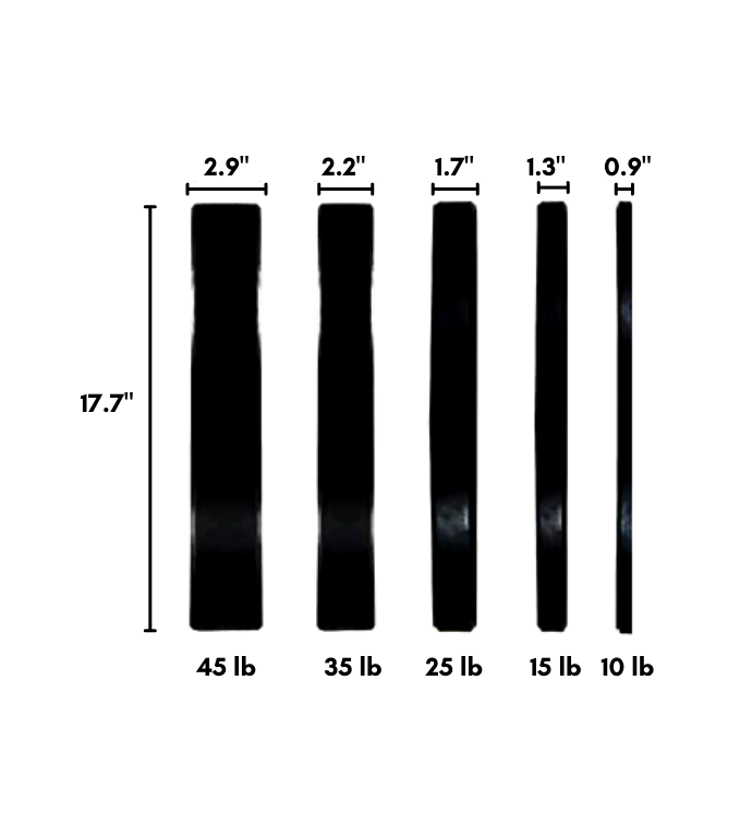 | Verfügbare Gewichte | 5,5 LB (2,5 kg), 11 LB (5 kg), 16,5 LB (7,5 kg), 22 LB (10 kg), 33 LB (15 kg) | 10 Pfund, 15 Pfund, 25 Pfund, 35 Pfund, 45 Pfund | 5,5 LB (2,5 kg), 11 LB (5 kg), 22 LB (10 kg), 33 LB (15 kg), 44 LB (20 kg) | 2,5 Pfund, 5 Pfund, 10 Pfund, 25 Pfund, 35 Pfund, 45 Pfund |
