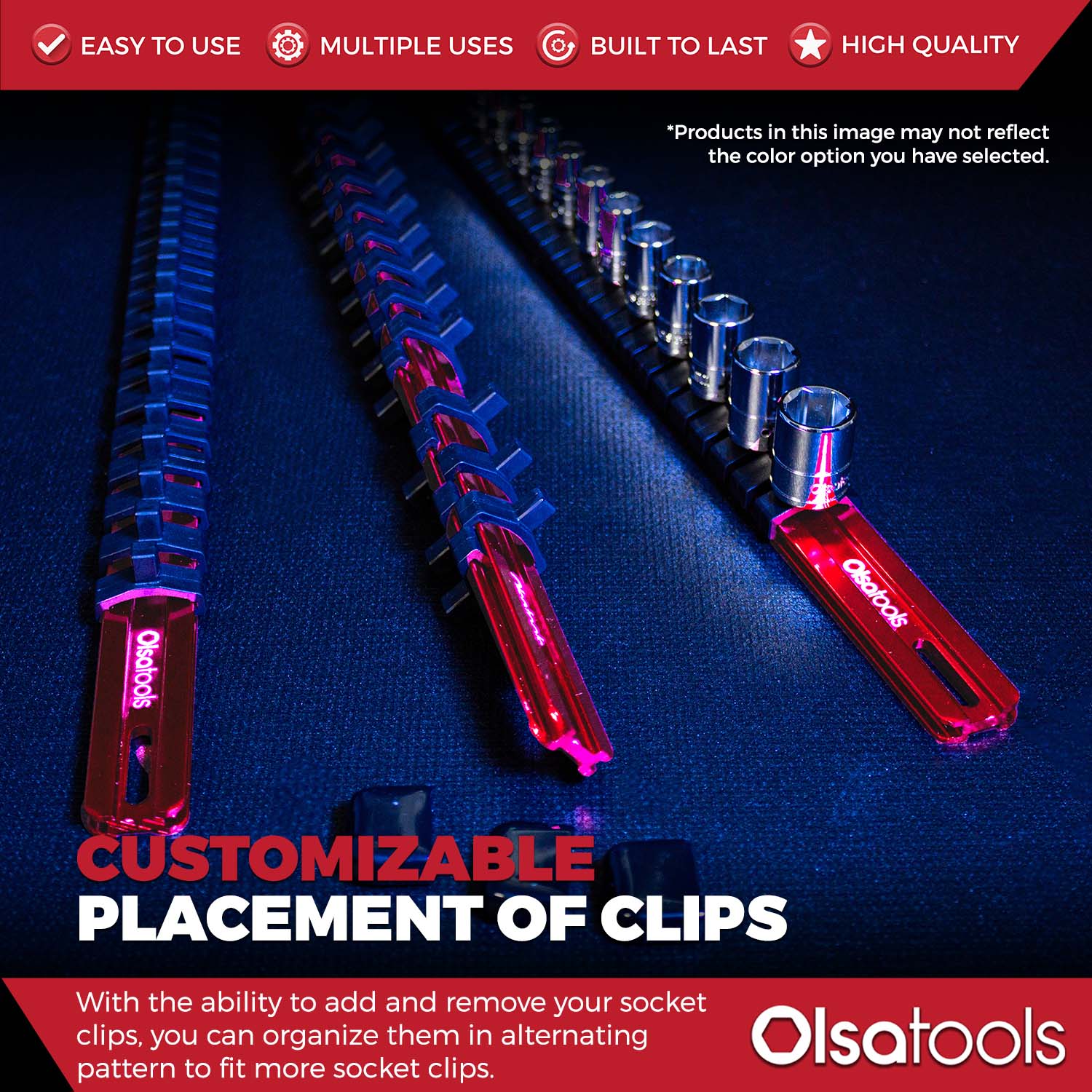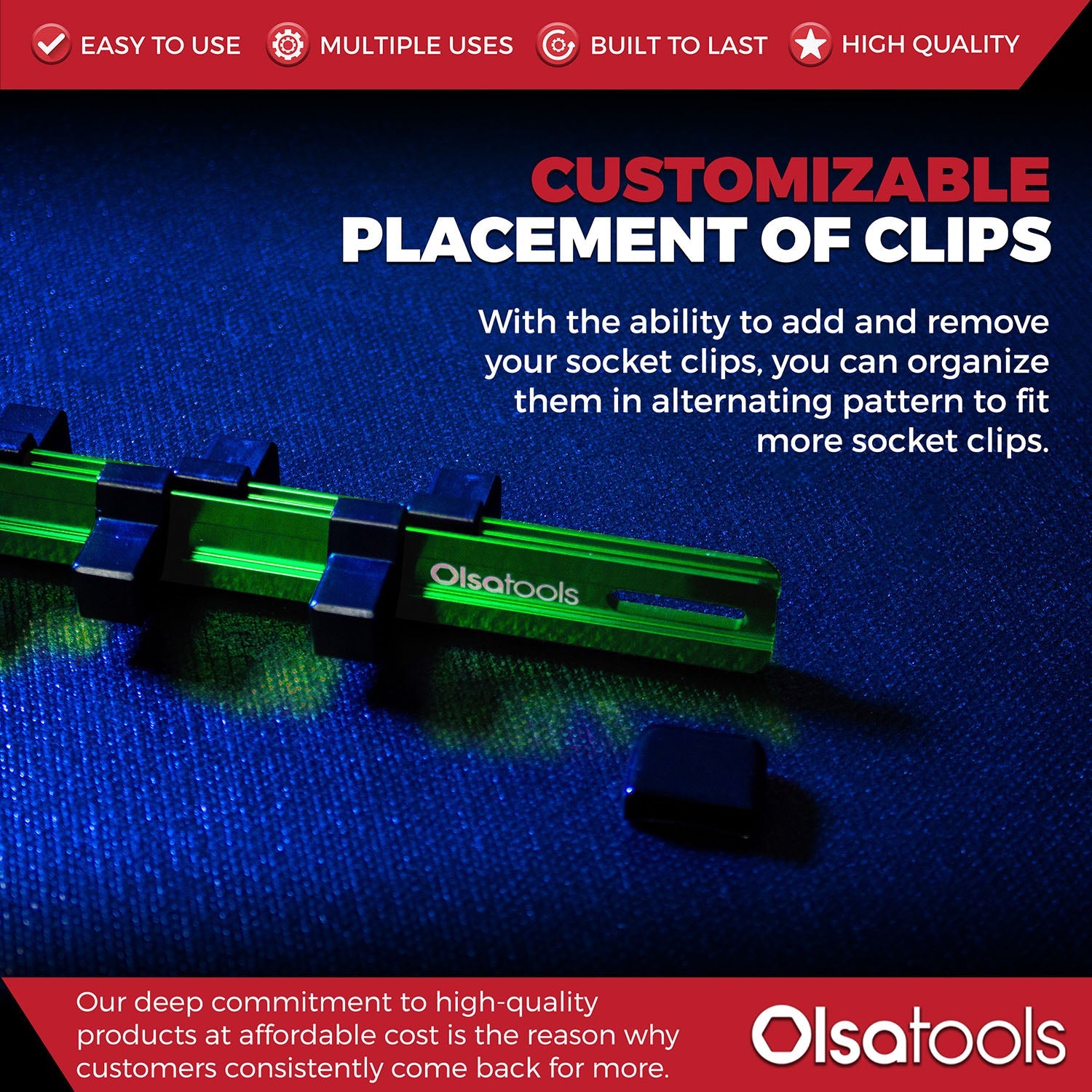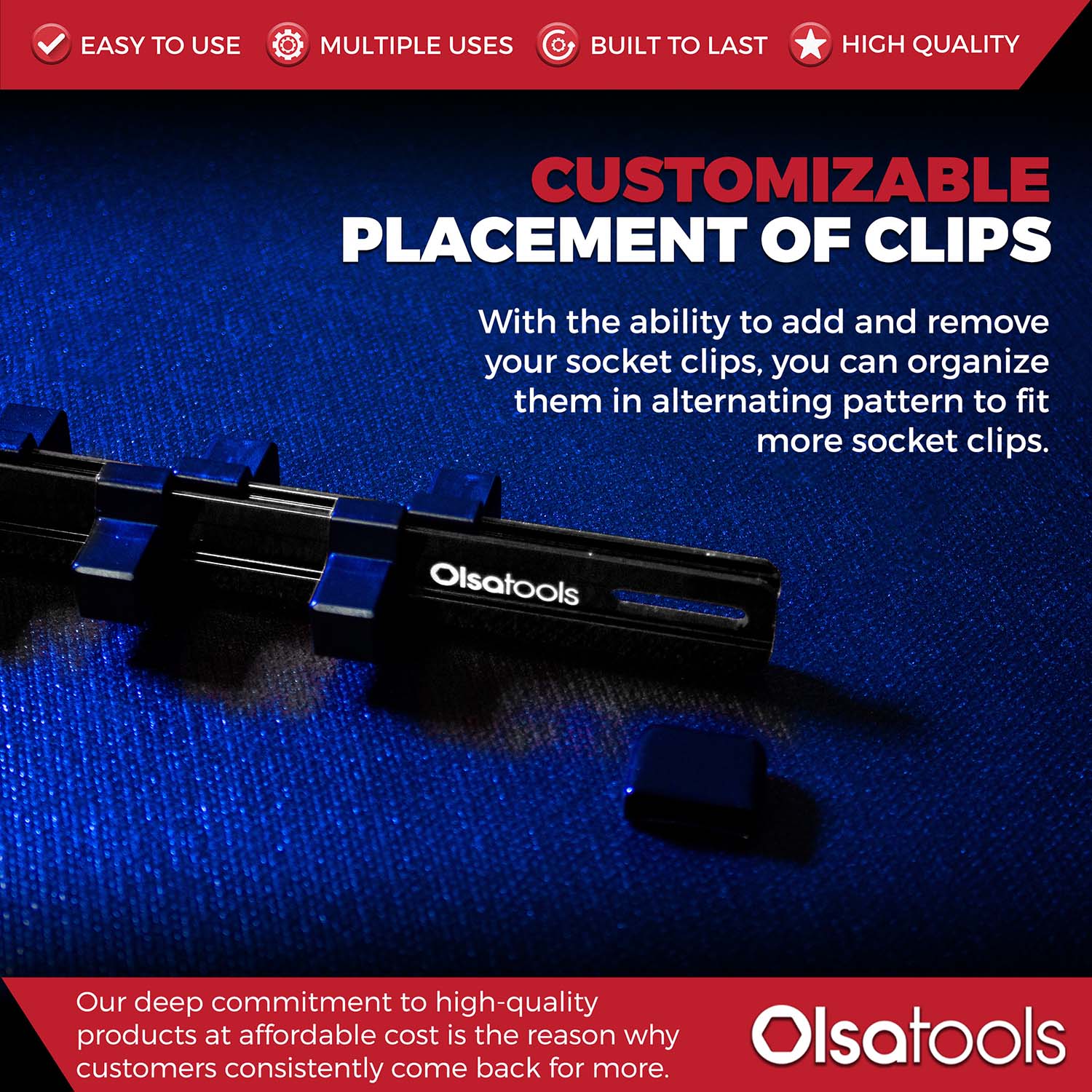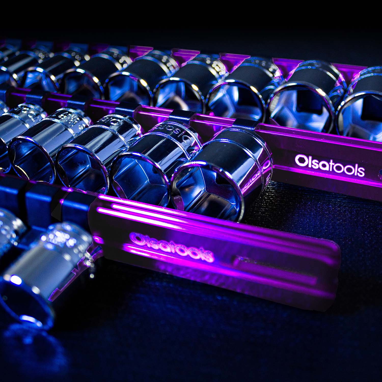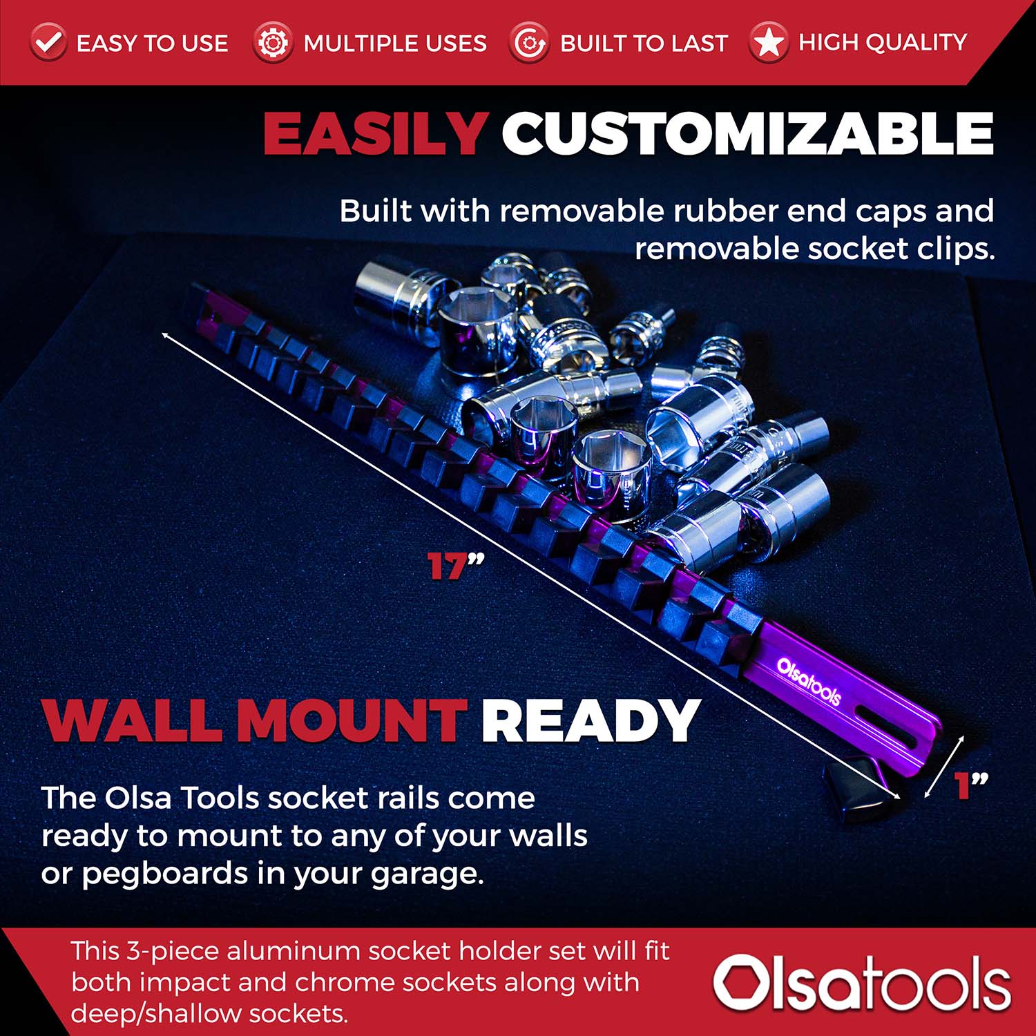 - With the Olsa Tools aluminum socket rails, you can make the most out of your time by spending more time working instead of wasting time looking for loose sockets. Easily organize up to 58 (16x - 1/2-inch, 24x - 1/4-inch, 18x - 3/8-inch) with a 3 pc kit or get individual rails for the perfect set up for your toolbox.