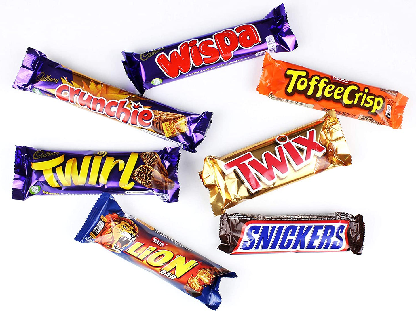 Ce panier de chocolat contient 27 barres de chocolat de taille normale, dont :