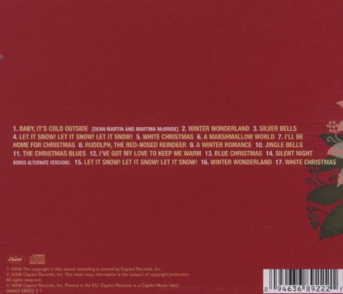 Details: Christmas With Dino is a fantastic collection of Yuletide songs by one-third of the Rat Pack (and formerly of the Martin & Lewis comedy team with Jerry Lewis). This collection is as cheery as a mug of hot chocolate on a cold winter's day, filled with wonderful songs and sounds of the Season, performed with a style that was distinctly Dino! Features merry melodies like 'Baby It's Cold Outside', 'Winter Wonderland', 'Let It Snow! Let It Snow! Let It Snow!' and more. 17 tracks in all. Capitol.