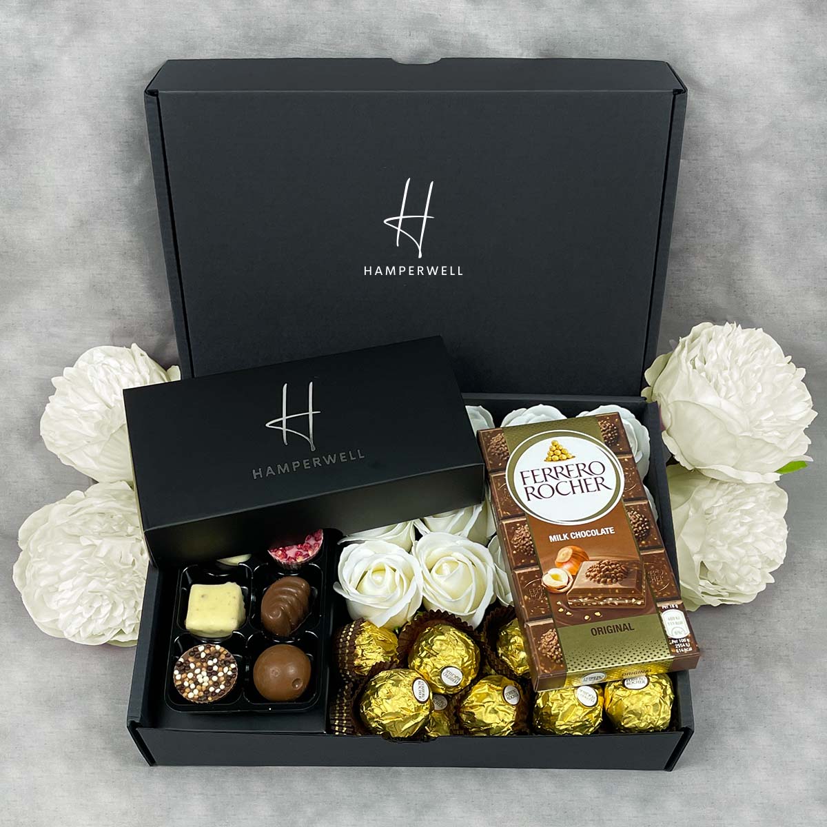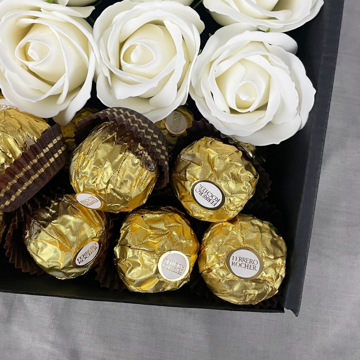 Coffret cadeau ultime Ferrero Rocher avec roses ivoire