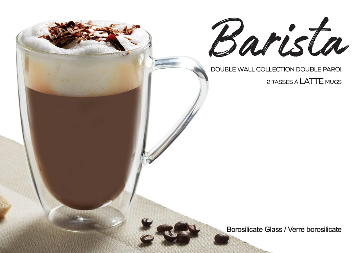 Lot de 4 mugs isothermes à double paroi en verre pour café, thé, boissons chaudes ou froides, 435 ml, Barista