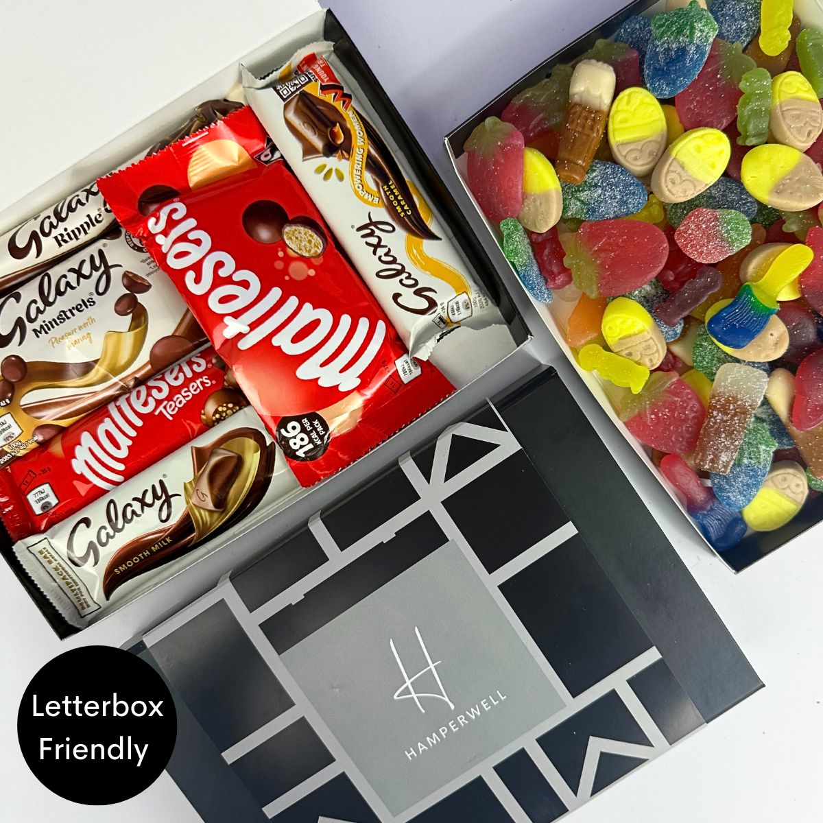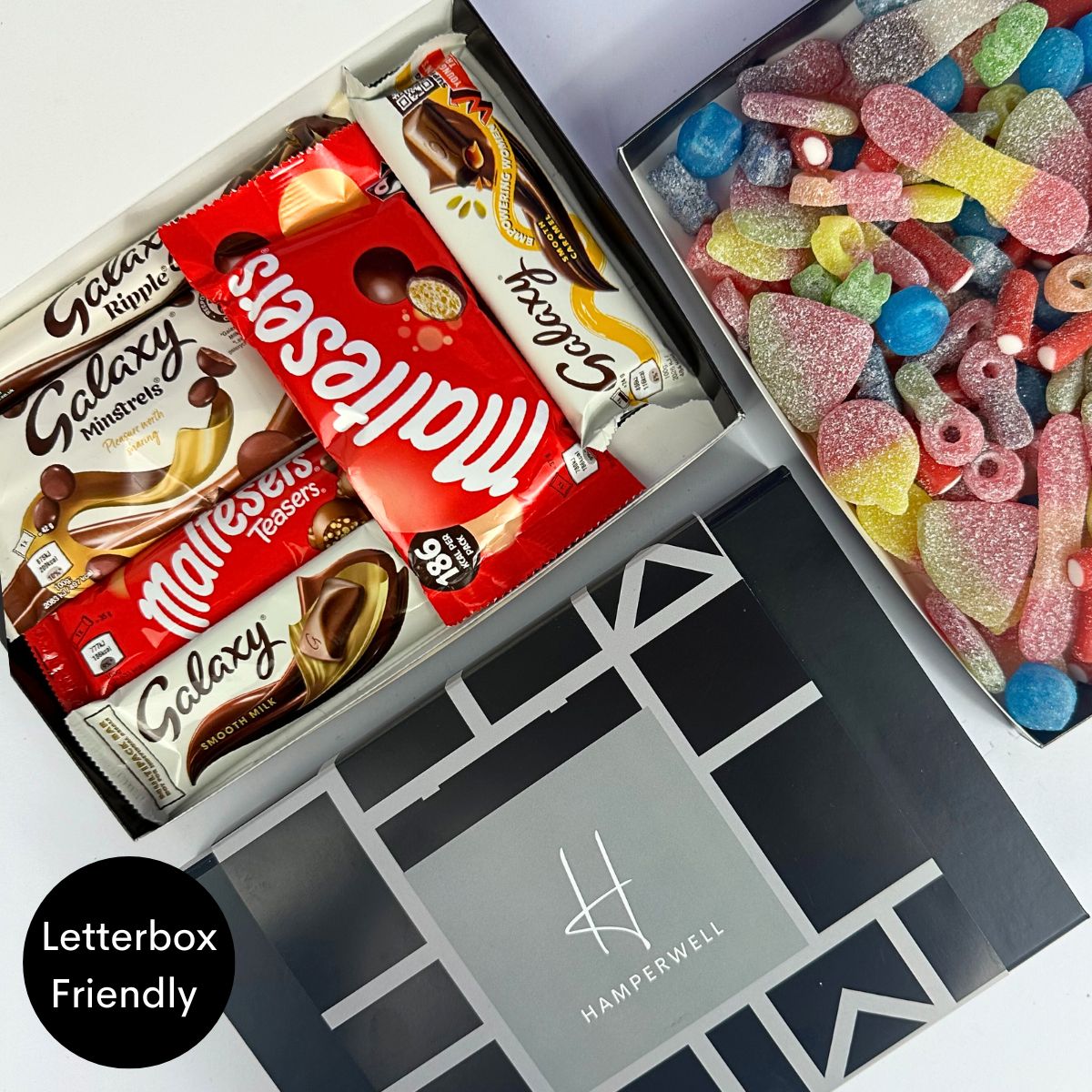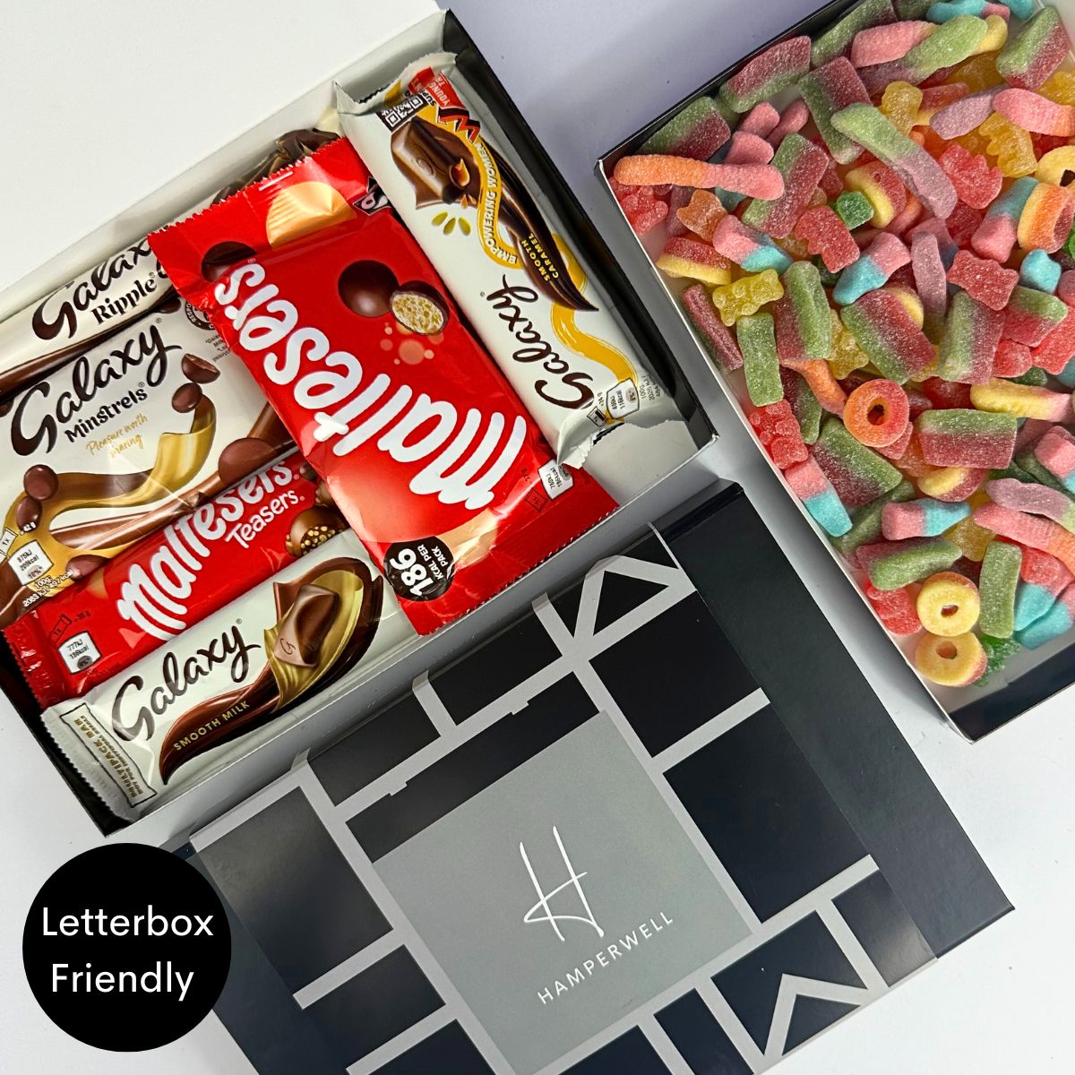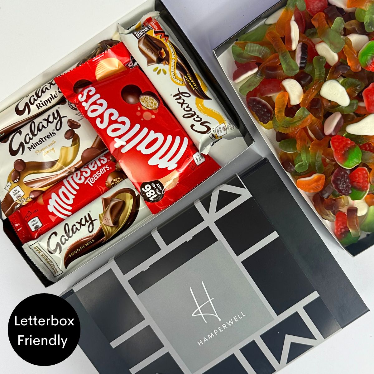 Découvrez le coffret cadeau Malteser Galaxy Chocolate Letterbox - le cadeau idéal pour tout amateur de chocolat ! Ce délicieux coffret contient un assortiment soigneusement sélectionné de friandises au chocolat Malteser & Galaxy, notamment des barres de chocolat au lait onctueuses, des Malteser Teasers, des Galaxy Minstrels irrésistiblement savoureux et le classique Galaxy Ripple.