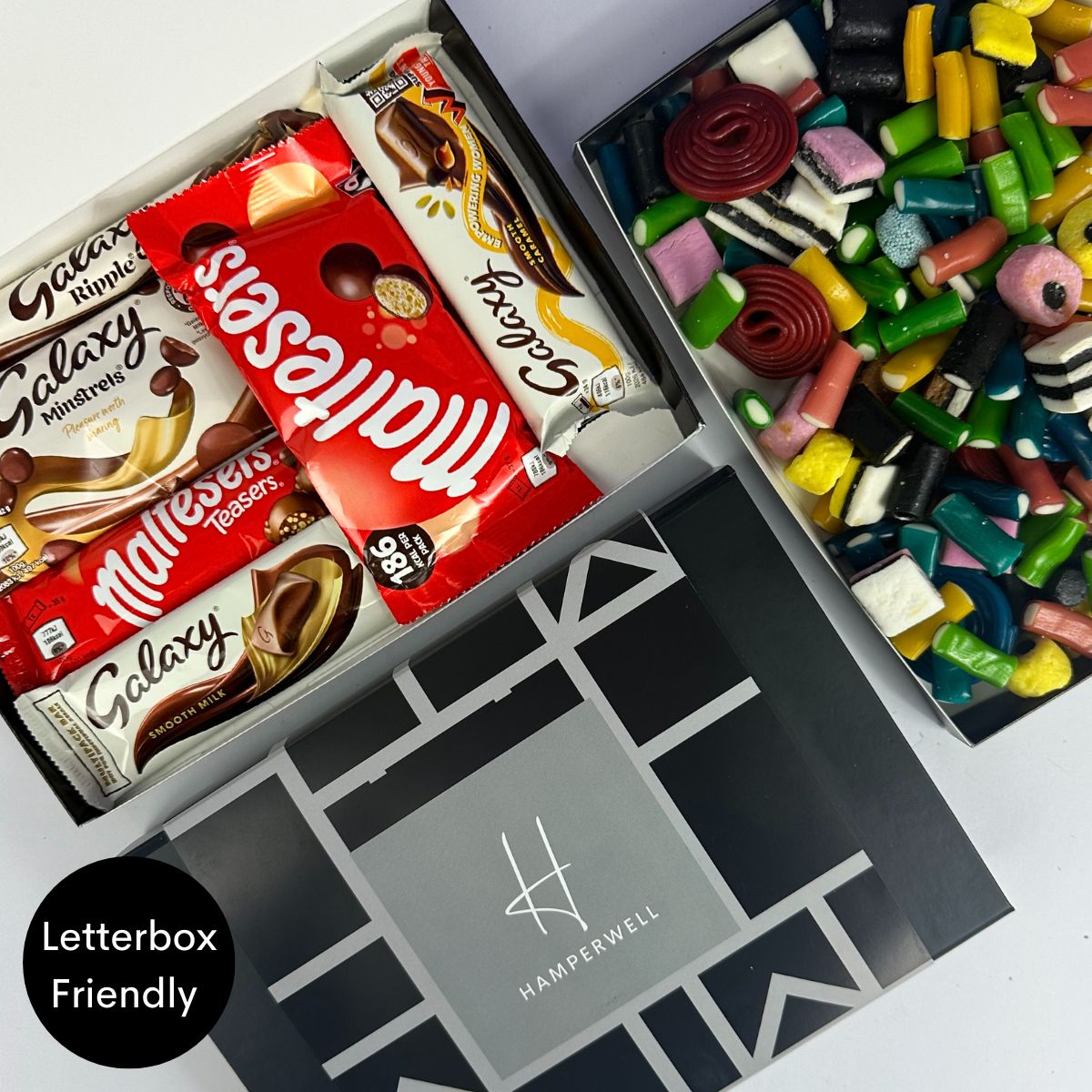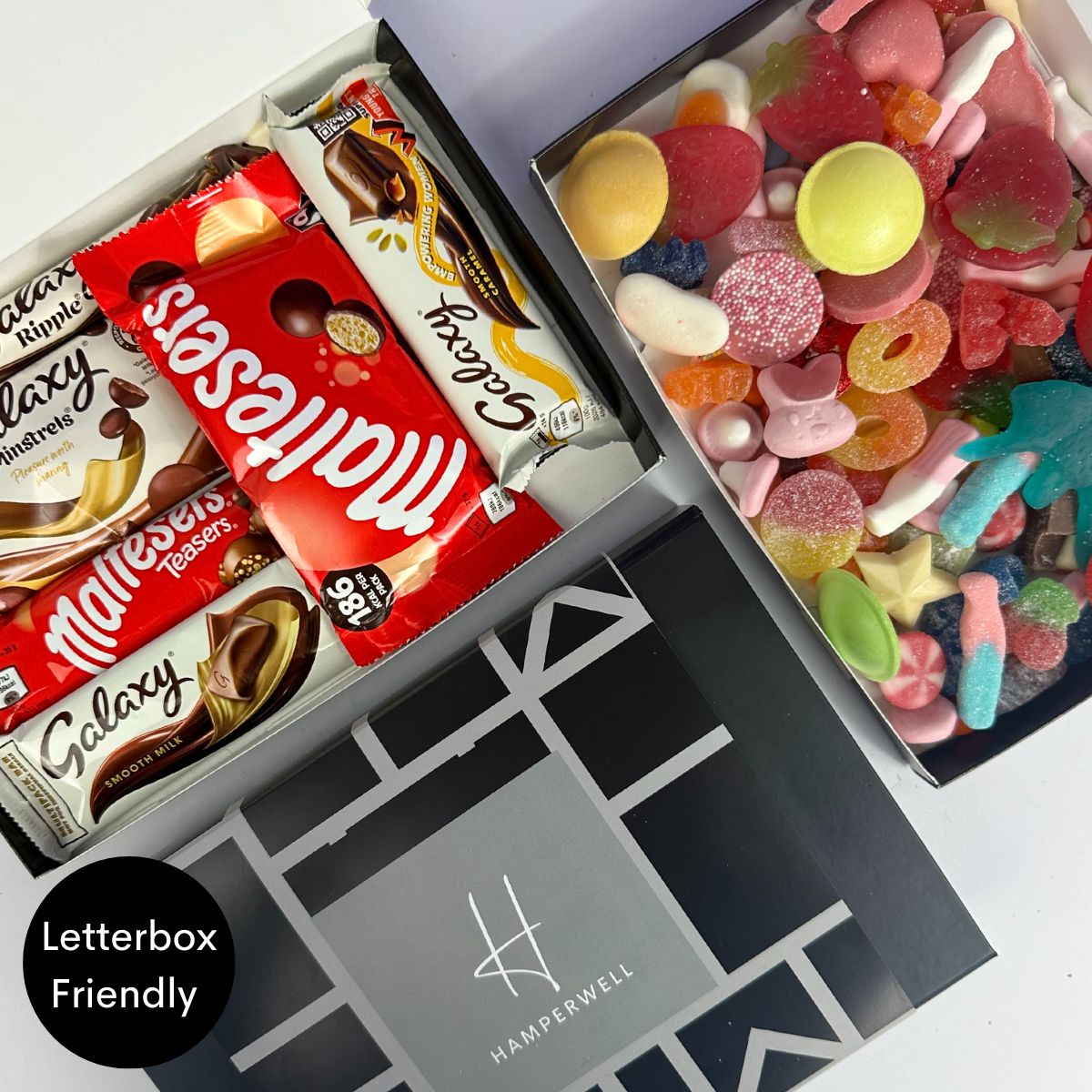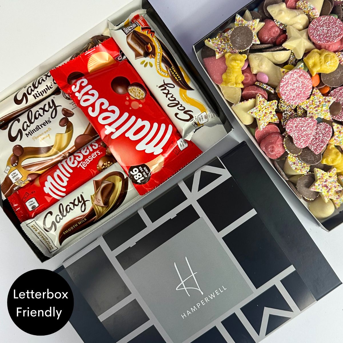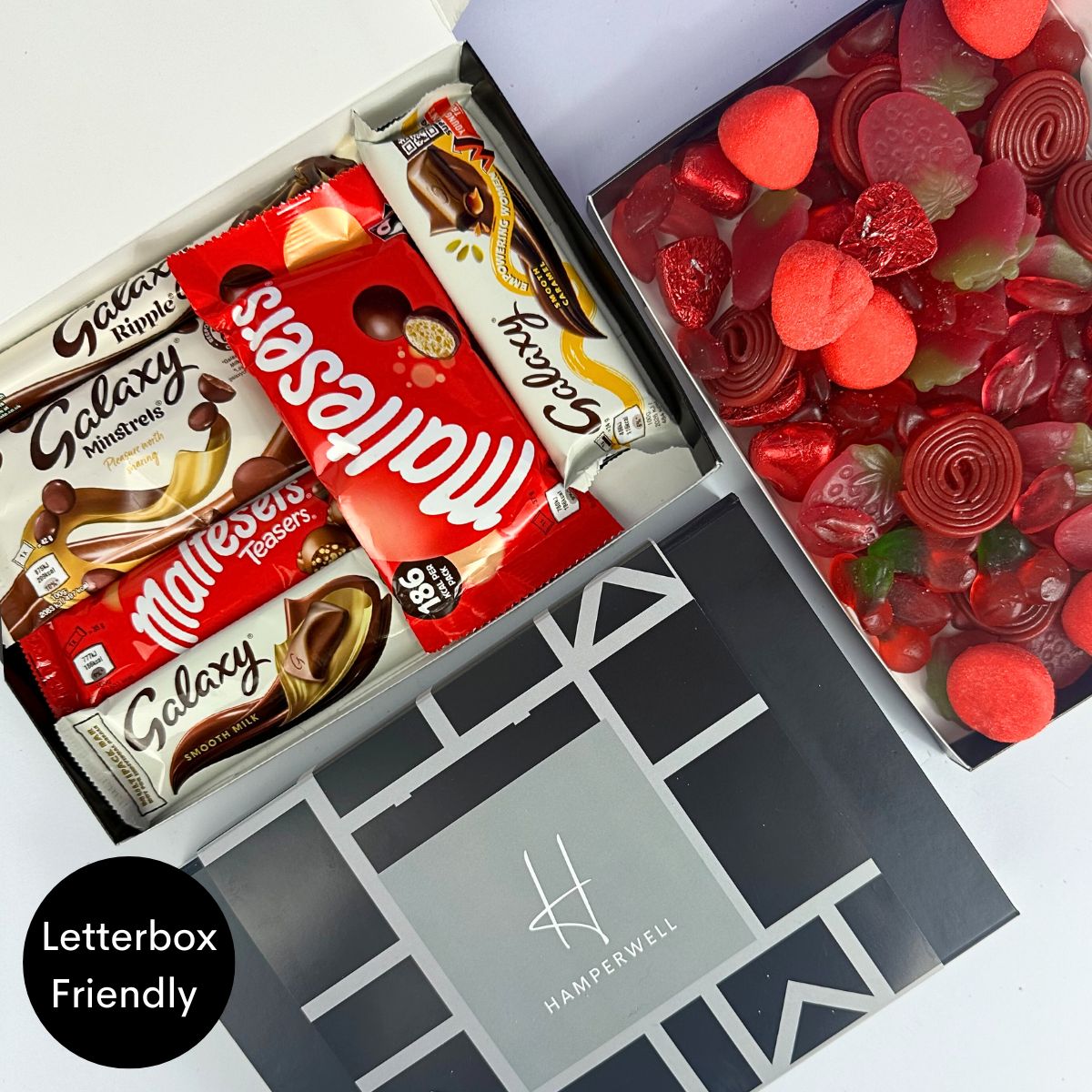 Découvrez le coffret cadeau Malteser Galaxy Chocolate Letterbox - le cadeau idéal pour tout amateur de chocolat ! Ce délicieux coffret contient un assortiment soigneusement sélectionné de friandises au chocolat Malteser & Galaxy, notamment des barres de chocolat au lait onctueuses, des Malteser Teasers, des Galaxy Minstrels irrésistiblement savoureux et le classique Galaxy Ripple.