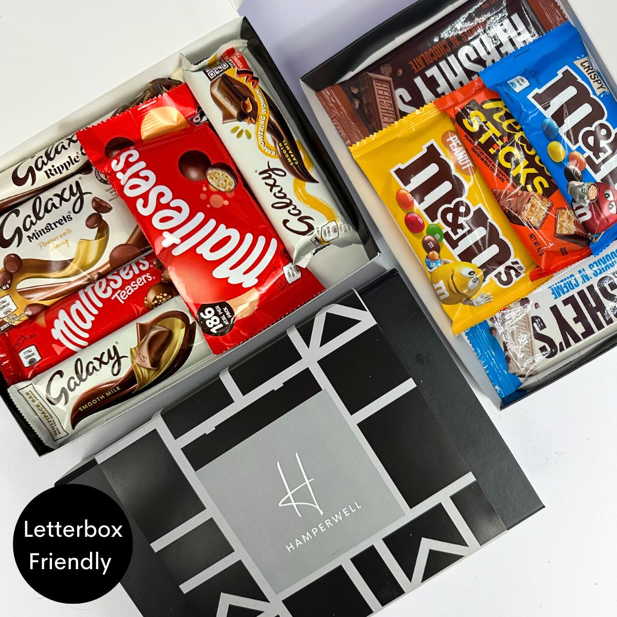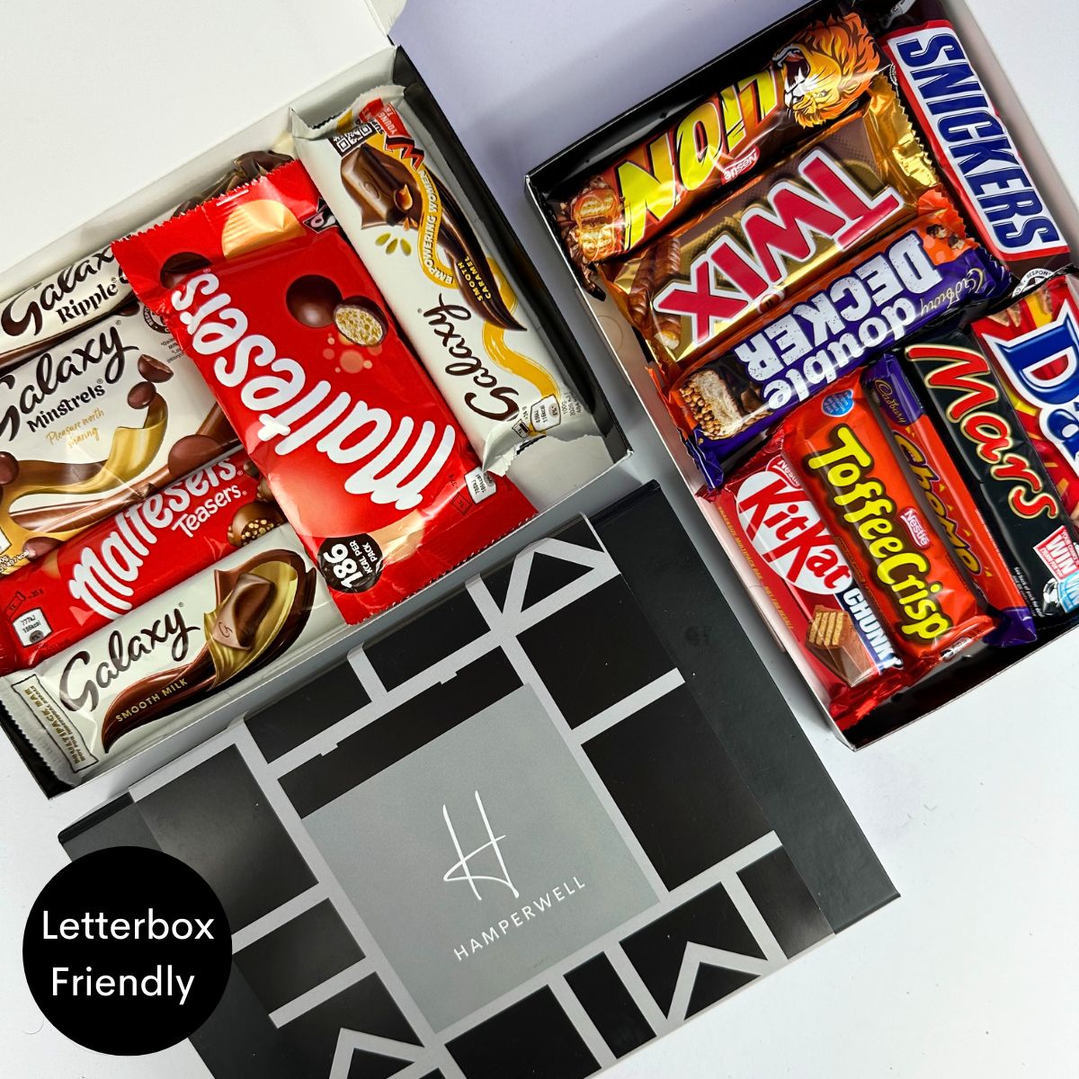 Choisissez de passer à notre option XL Mix and Match, en mélangeant deux de nos boîtes aux lettres Chocolat et Sucré pour une expérience gourmande et sucrée !
