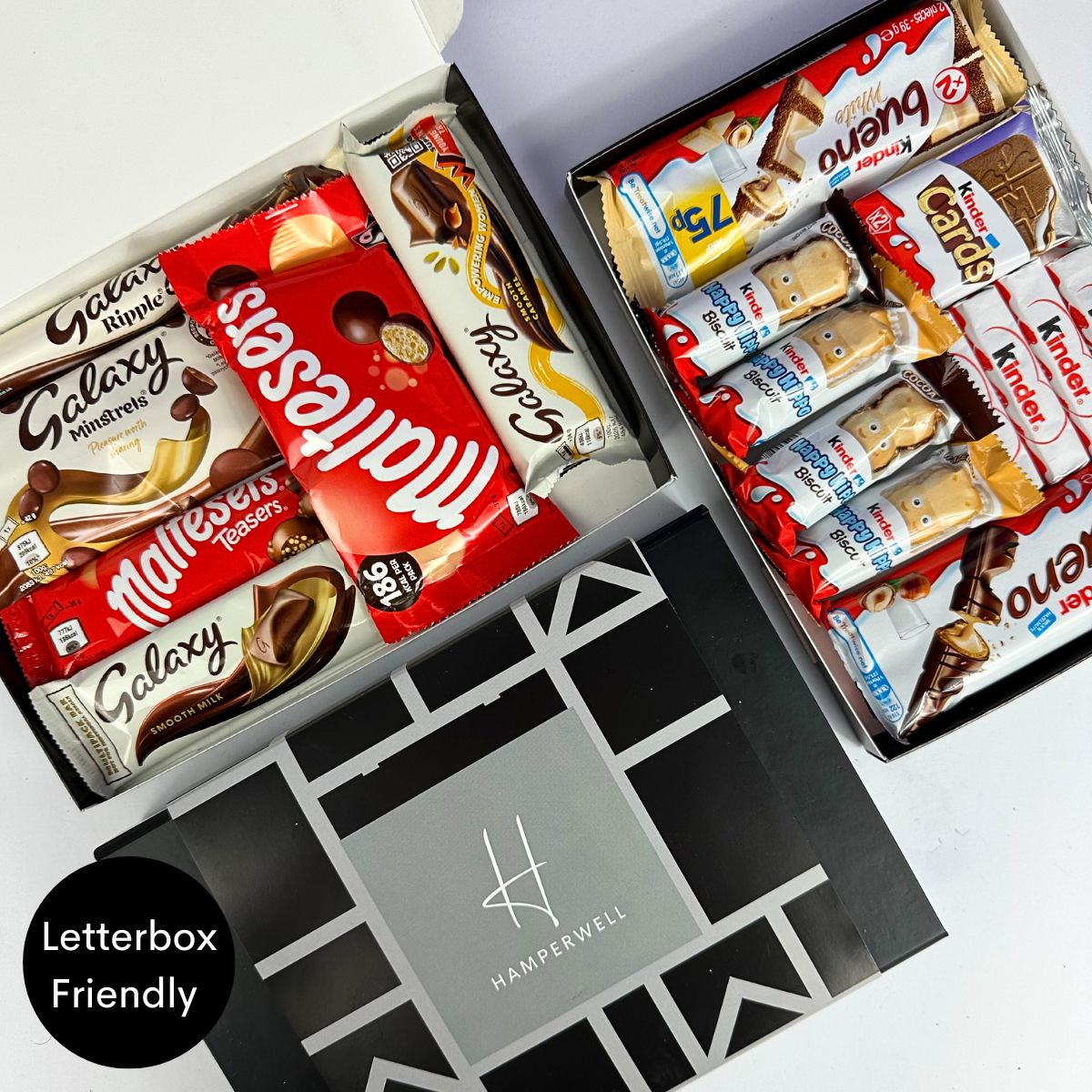 Nos boîtes aux lettres assorties sont issues des boîtes aux lettres de taille standard de nos gammes de boîtes aux lettres pour chocolats et de boîtes aux lettres pour bonbons. Votre choix de deux boîtes aux lettres sera attaché ensemble et présenté avec un emballage de luxe design. Doublez le contenu, mais toujours adapté aux boîtes aux lettres !