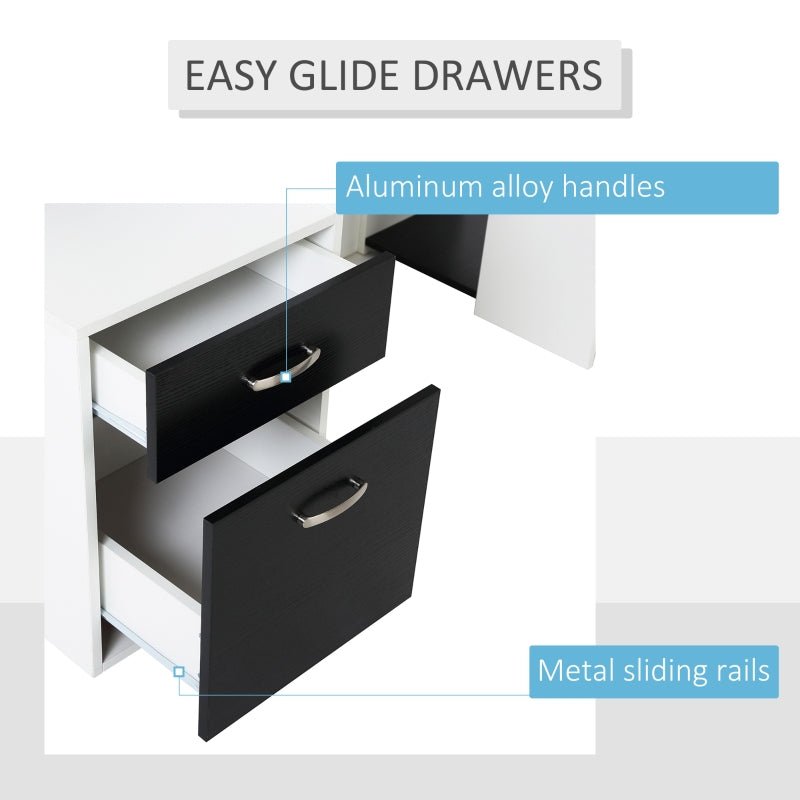Bureau d'ordinateur moderne avec tiroirs et étagères de rangement, poste de travail d'étude, bureau avec support d'imprimante pour bureau à domicile, noir et blanc