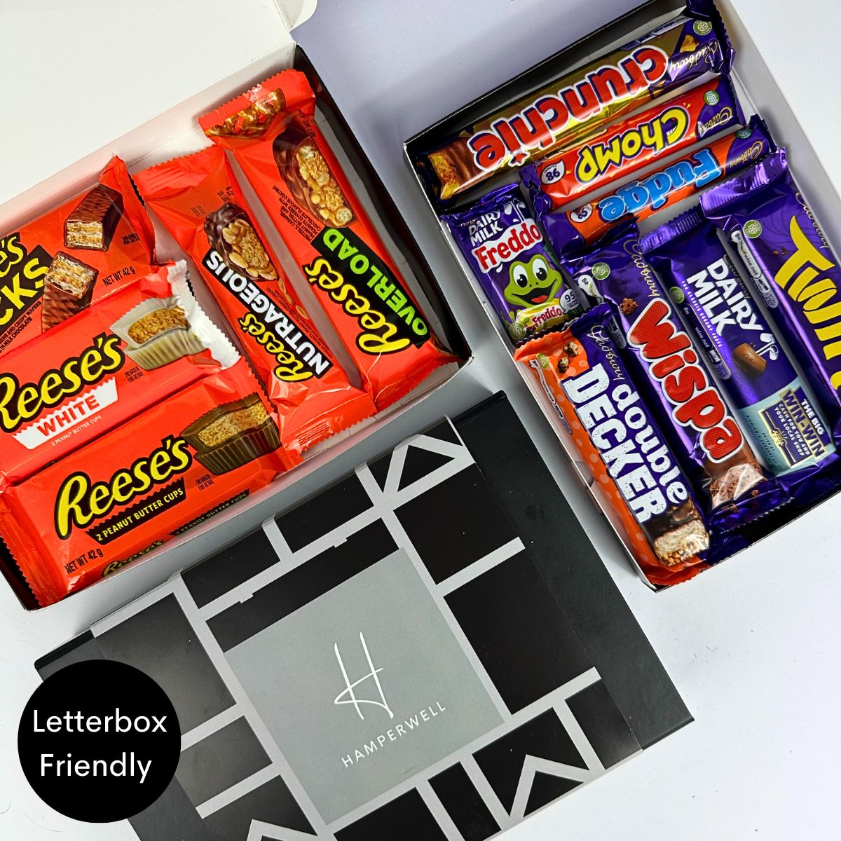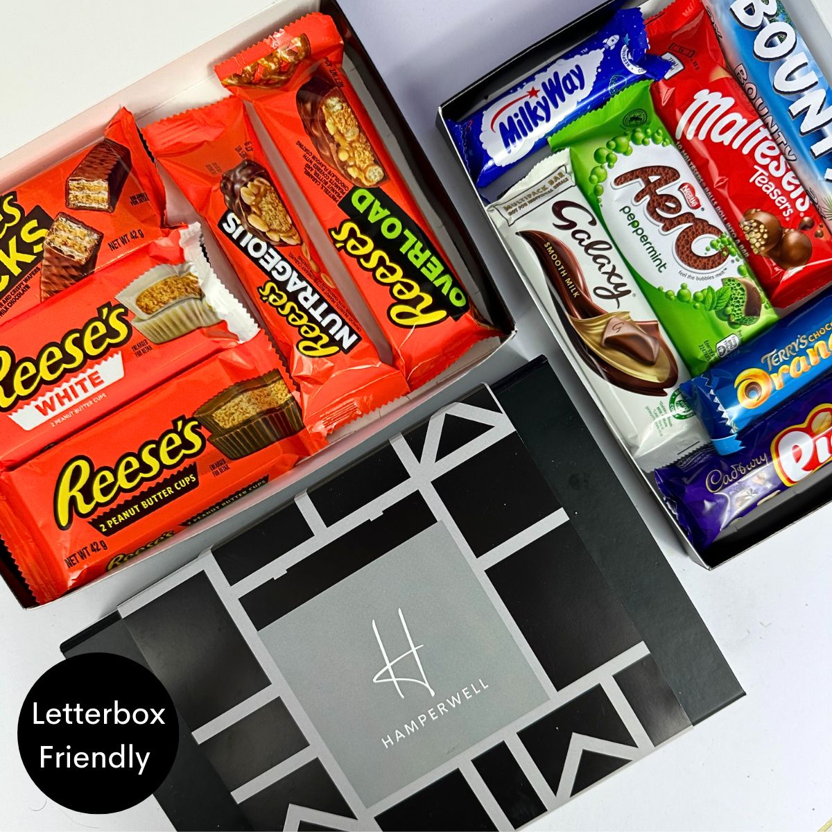 Choisissez de passer à notre option XL Mix and Match, en mélangeant deux de nos boîtes aux lettres Chocolat et Sucré pour une expérience gourmande et sucrée !