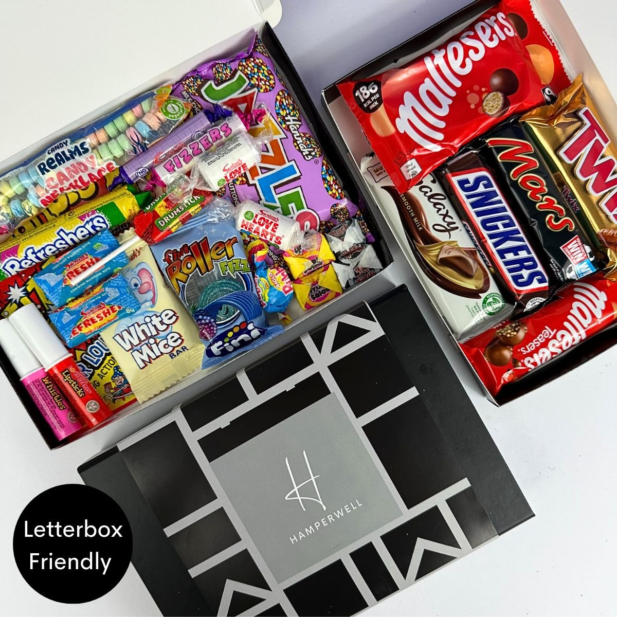 Choisissez de passer à notre option XL Mix and Match, en mélangeant deux de nos boîtes aux lettres Chocolat et Sucré pour une expérience gourmande et sucrée !