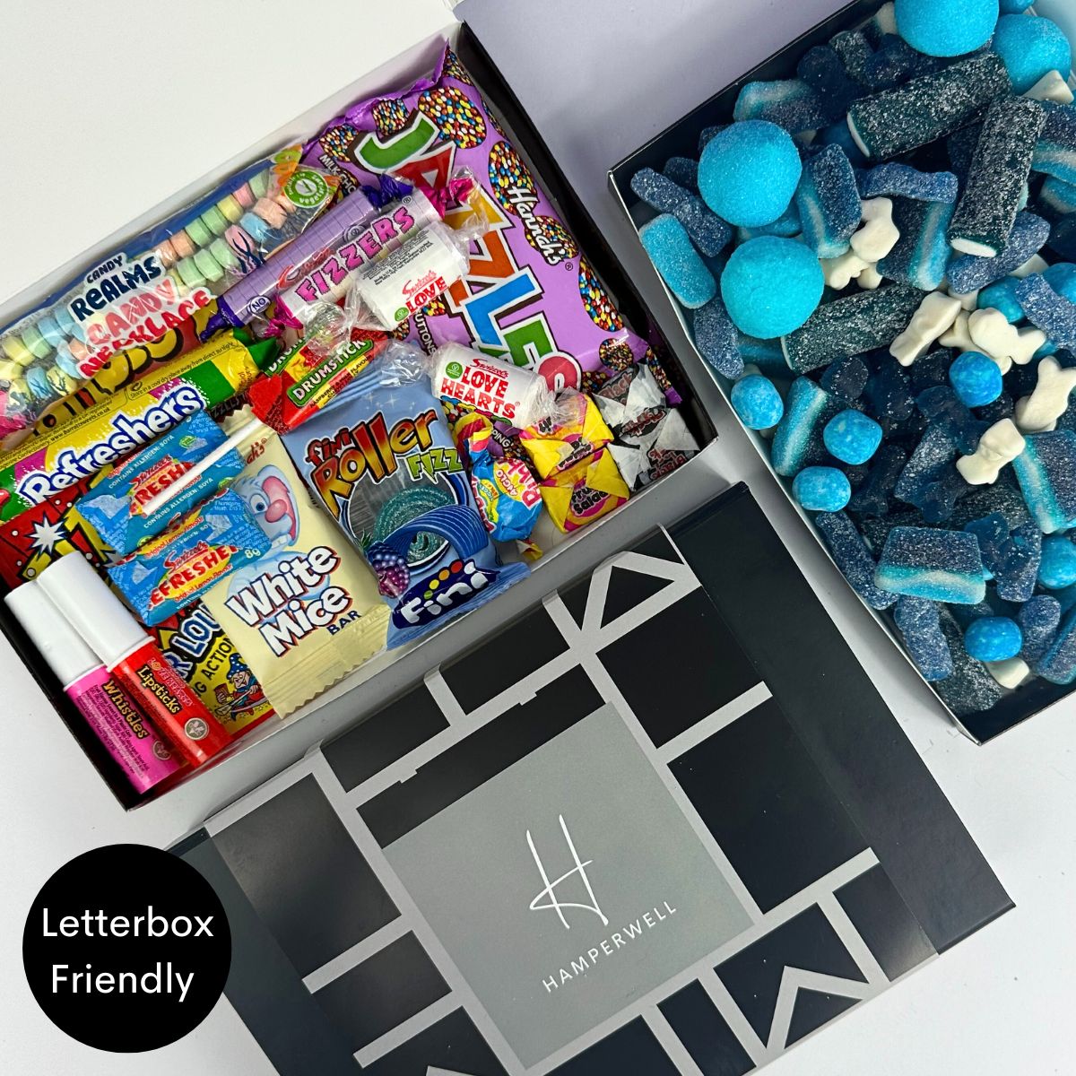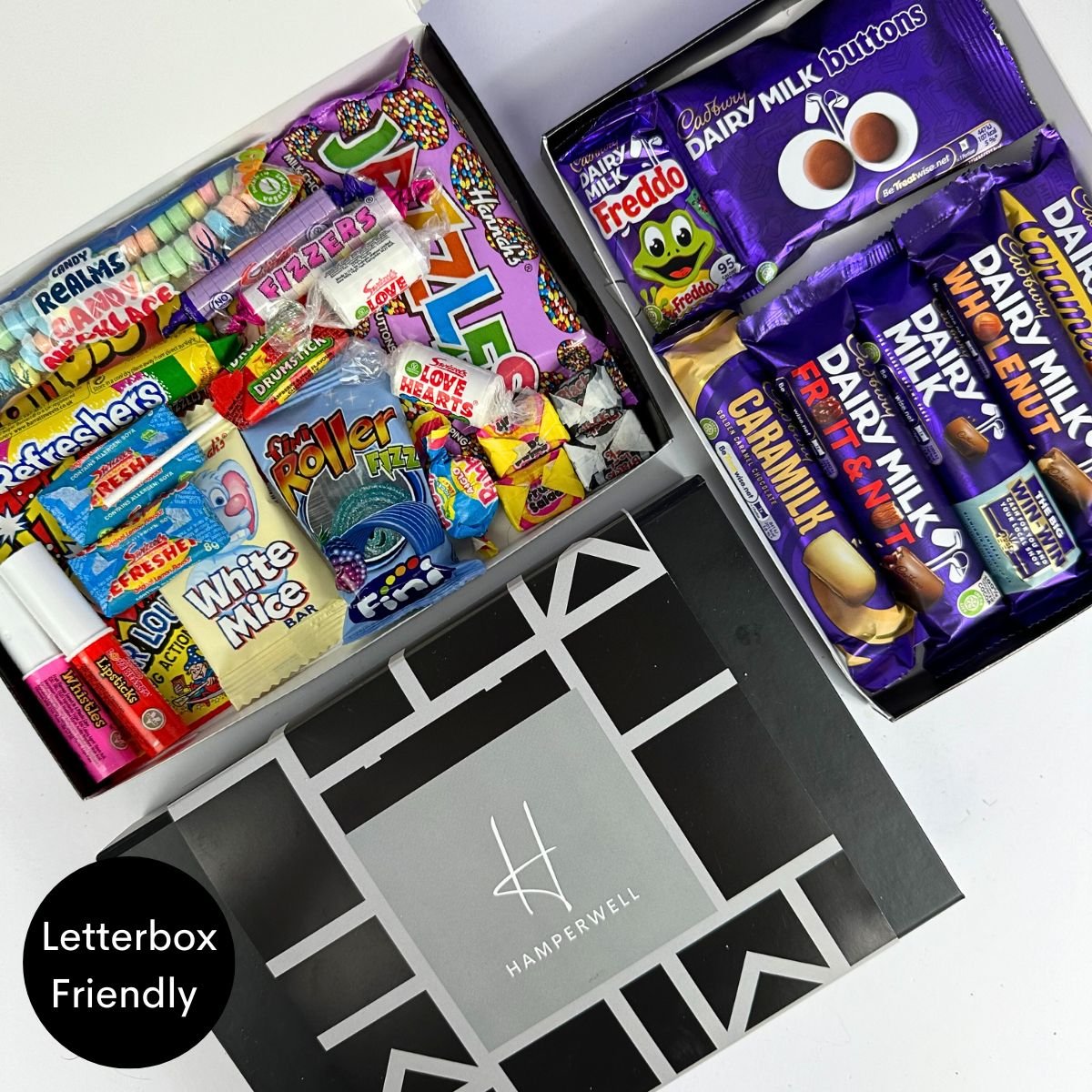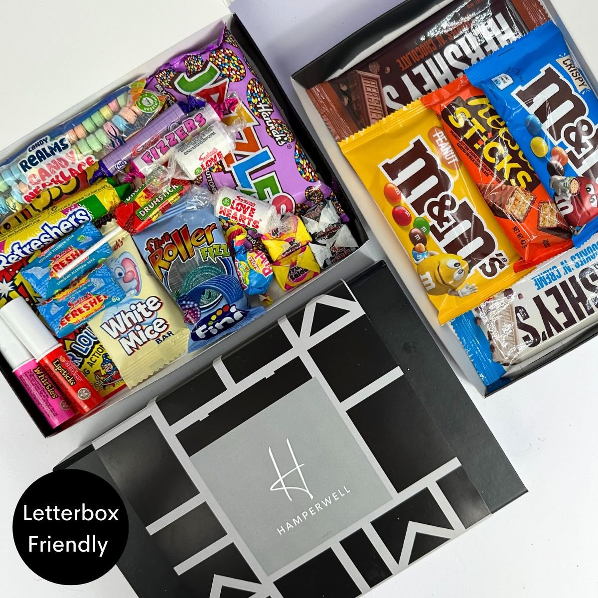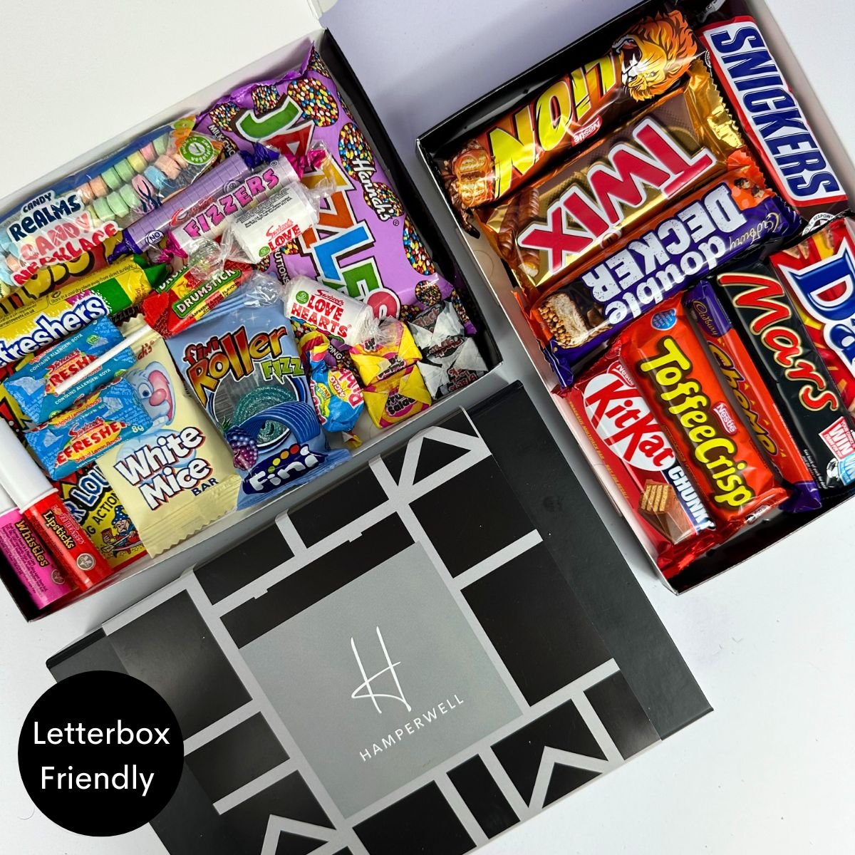 Envoyez de doux cadeaux sans tracas avec notre service de cadeaux en boîte aux lettres. Offrez-vous notre panier-cadeau en boîte aux lettres Retro Sweets contenant des violettes de Parme géantes, une barre à mâcher Vimto, des cœurs d'amour et bien plus encore ! Toutes ces délicieuses friandises sont soigneusement emballées dans un coffret cadeau adapté aux boîtes aux lettres, ce qui permet de les envoyer facilement à vos amis et à votre famille. C'est le moyen idéal de faire savoir à quelqu'un que vous pensez à lui, peu importe où il se trouve.