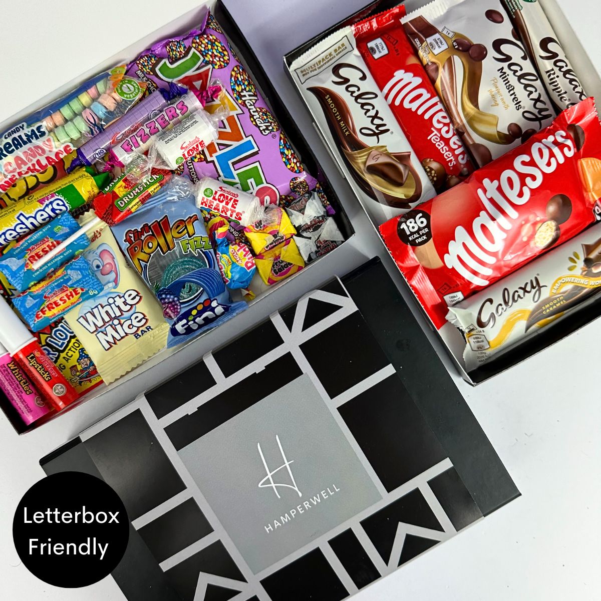 CADEAUX BOÎTE AUX LETTRES - Nos tout nouveaux cadeaux en boîte aux lettres sont parfaits pour être envoyés directement à votre destinataire, directement dans sa boîte aux lettres. C'est le moyen le plus simple de livrer des friandises au chocolat, sans vous soucier de savoir si elles seront dedans ou non. Découvrez dès aujourd'hui nos nouveaux cadeaux en chocolat en boîte aux lettres. Vous cherchez quelque chose de plus grand ? Alors pourquoi ne pas explorer notre délicieuse gamme de paniers cadeaux .