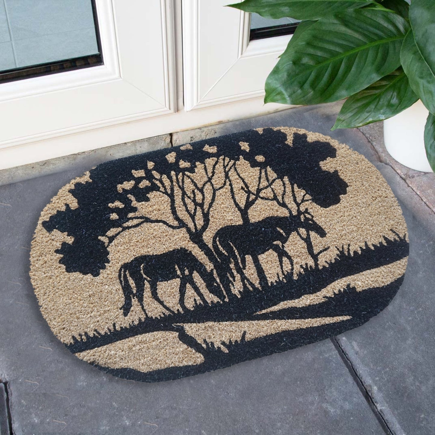 Découvrez les fibres de coco naturelles avec le paillasson rond touffeté en fibre de coco Riverside Horse, fabriqué en Inde. Son envers en PVC durable de 40 x 60 cm empêche la saleté et les débris de pénétrer, tandis que les fibres naturelles lui confèrent une apparence et une texture agréables. Vos visiteurs apprécieront l'accueil chaleureux que ce paillasson leur réservera.