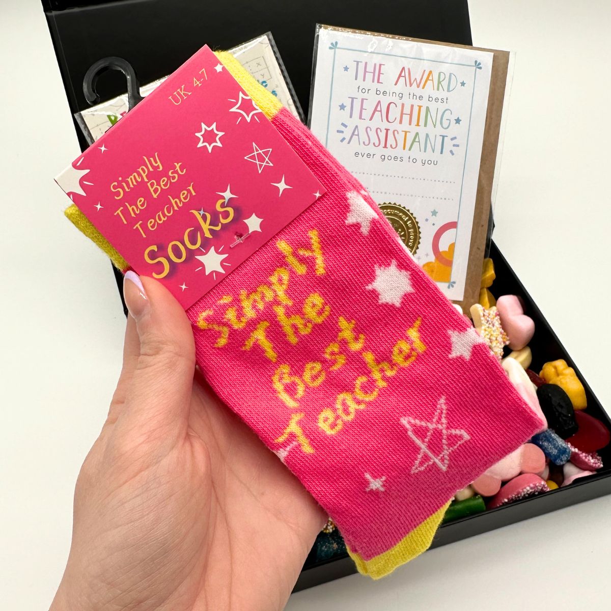 Chaussettes étoilées roses / jaunes / blanches Simply The Best Teacher (taille 4-7).