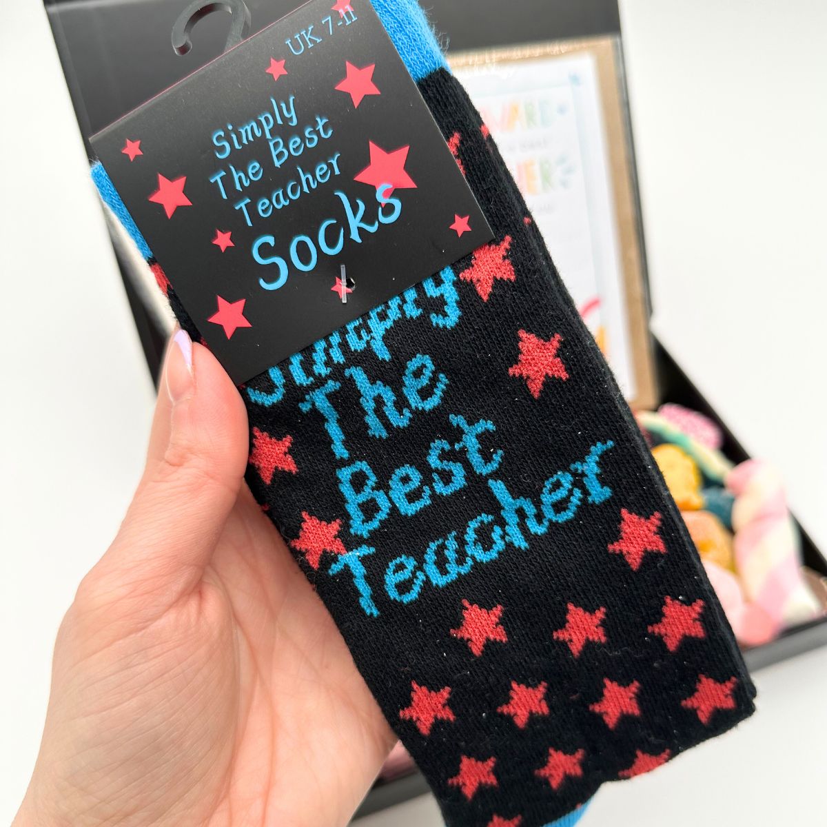 Chaussettes étoilées noires / bleues / rouges Simply The Best Teacher (taille 7-11).