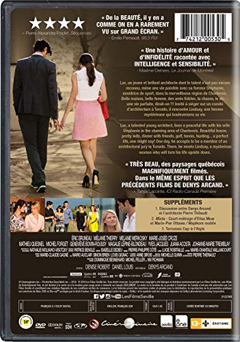 Details: Product Description Luc, a talented young architect, lives a peaceful life with his wife Stephanie in the stunning area of Charlevoix. Beautiful house, pretty wife, dinner with friends, golf, tennis, hunting... a perfect life, one might say! One day, he accepts to be a member of an architectural jury in Toronto. There, he meets Lindsay, a mysterious woman who will turn his life upside down. Special Features Discussion entre Denys Arcand et l'architecte Pierre Thibault Micta – Court-métrage d'Elisa Moar et Marie-Pier Ottawa / Wapikoni mobile Terrasses Cap-à-l'Aigle