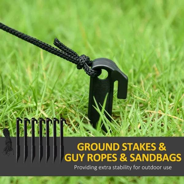 - - Includes seven ground stakes, two pull ropes and three sandbags to help keep it on the window